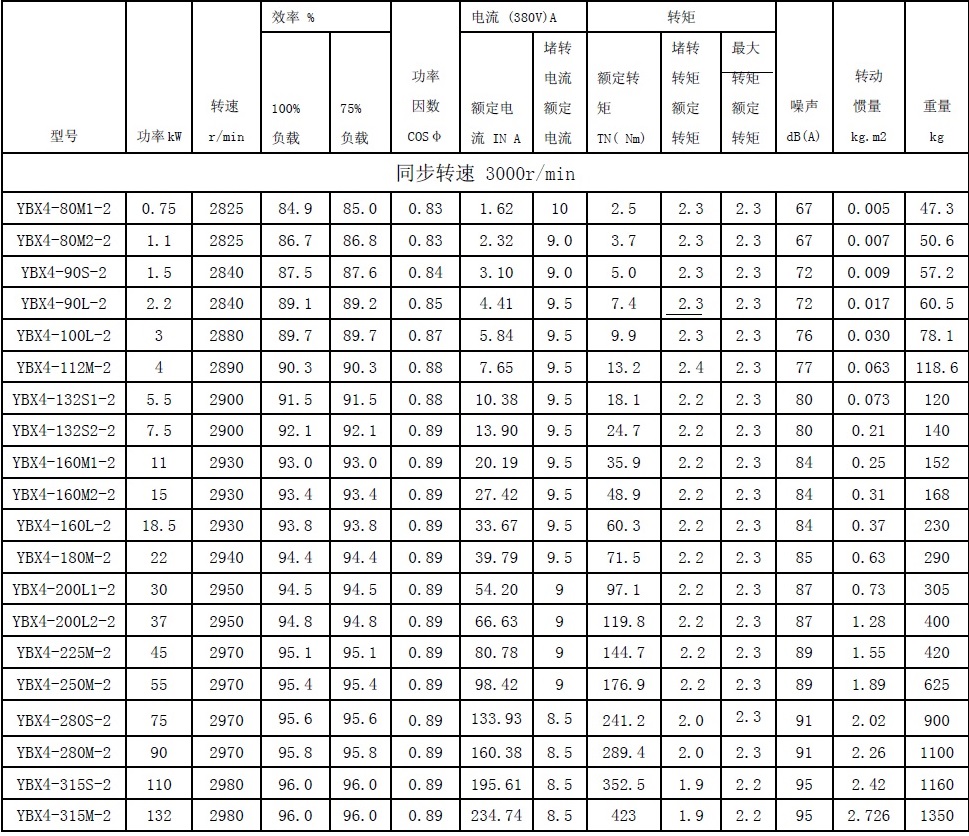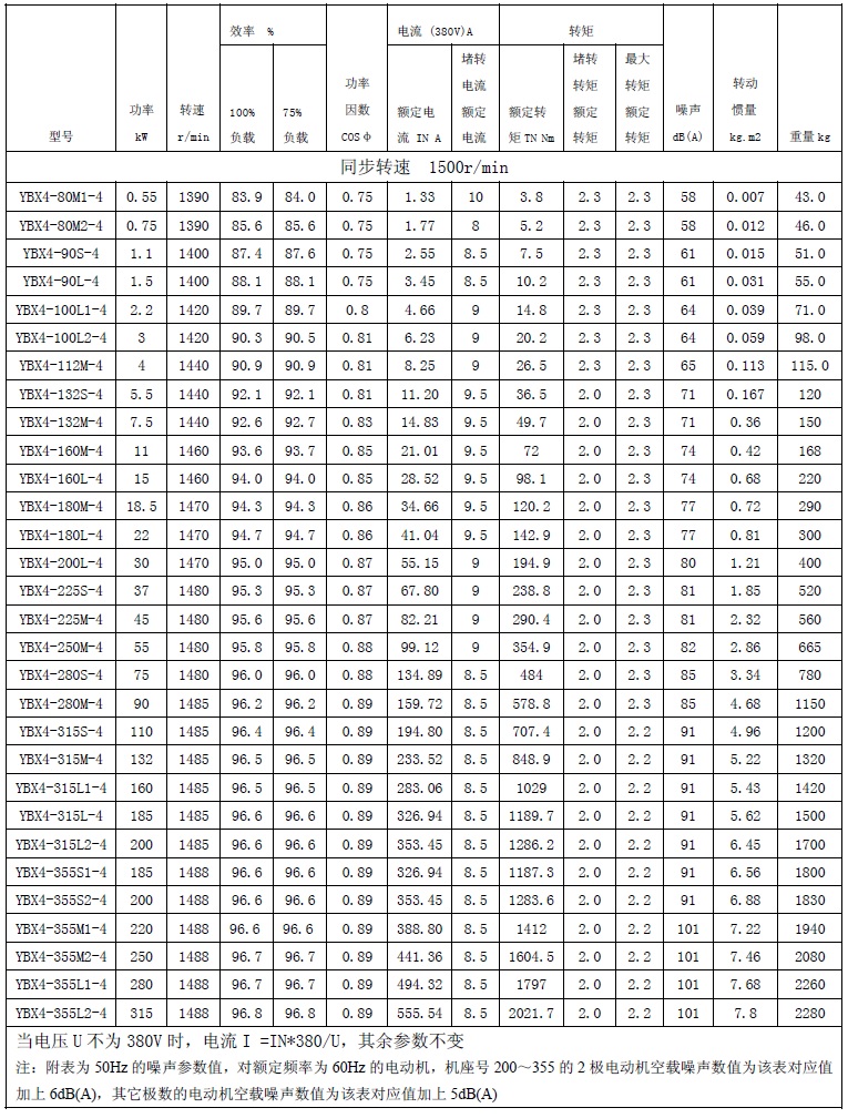 YBX4 系列電動機(jī)為我公司自主研發(fā)推出的全封閉、自扇冷、鼠籠式高效率隔爆型三相異步電動機(jī)。效率指標(biāo)符合 GB18613-2012《中小型三相異步電動機(jī)能效限定值及能效等級》中的能效等級 1 級,且具有性能優(yōu)良,使用安全可靠,振動、噪聲比同類產(chǎn)品低的特點,符合環(huán)保要求。