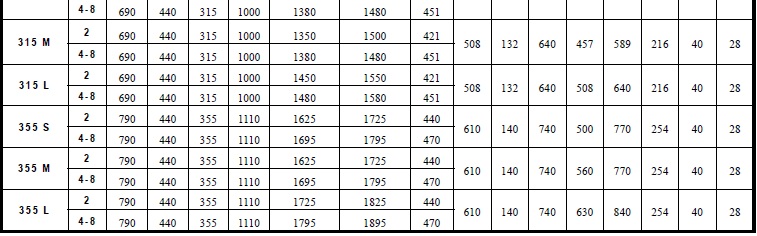 機(jī)座號 80-355 主接線盒位于電機(jī)頂部(從電機(jī)軸伸端看),出線口可四個方向調(diào)整,但 160中心高及以上接線盒出線口朝后(朝非軸伸端)時,由于吊環(huán)的影響,需在安裝現(xiàn)場,將電機(jī)吊裝到位后,取下吊環(huán),打開接線盒蓋,松開接線盒與機(jī)座聯(lián)接螺栓,將接線盒出線口朝后調(diào)裝。